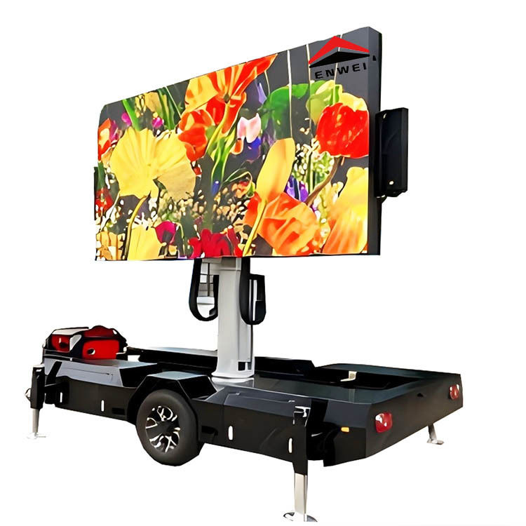 تتميز مقطورة عرض الإعلانات الإلكترونية LED بدقة عالية وسطوع عالٍ، قادرة على توفير صور واضحة. حتى في ضوء الشمس المباشر، يمكن للشاشة أن تظهر الصورة بوضوح. وفي الوقت نفسه، تم تجهيز مقطورة عرض LED بصاري هيدروليكي ونظام دوران، مما يتيح تعديل ارتفاع وزاوية الشاشة، وتحقيق عرض سلس بزاوية 360 درجة. لديها ثبات قوي وتظل مستقرة حتى في البيئات الخارجية.