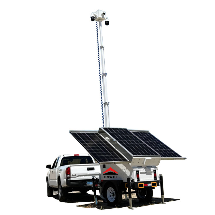 مقطورة أمنية تعمل بالطاقة الشمسية مع سارية كهربائية بارتفاع 7 أمتار لمواقع البناء